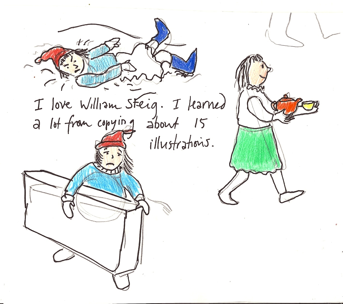 In the past months I have spent a lot of time copying from photos and children’s books. My favorite book illustrator is Helen Oxenbury. I am learning a lot about line from her marvelous illustrations.